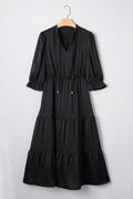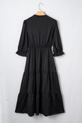 Black Flounced Bracelet Sleeve V Neck Tiered Maxi Dress