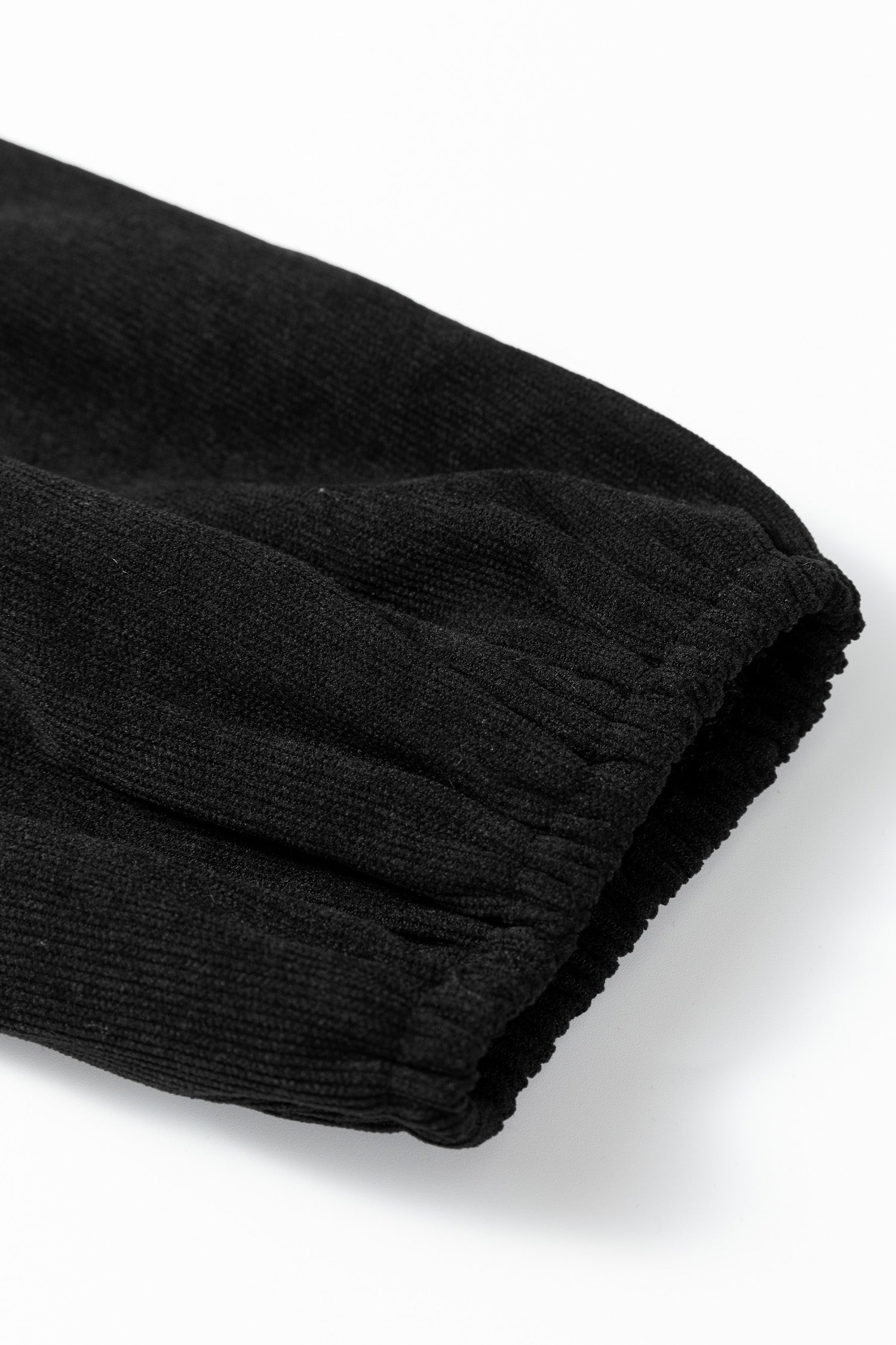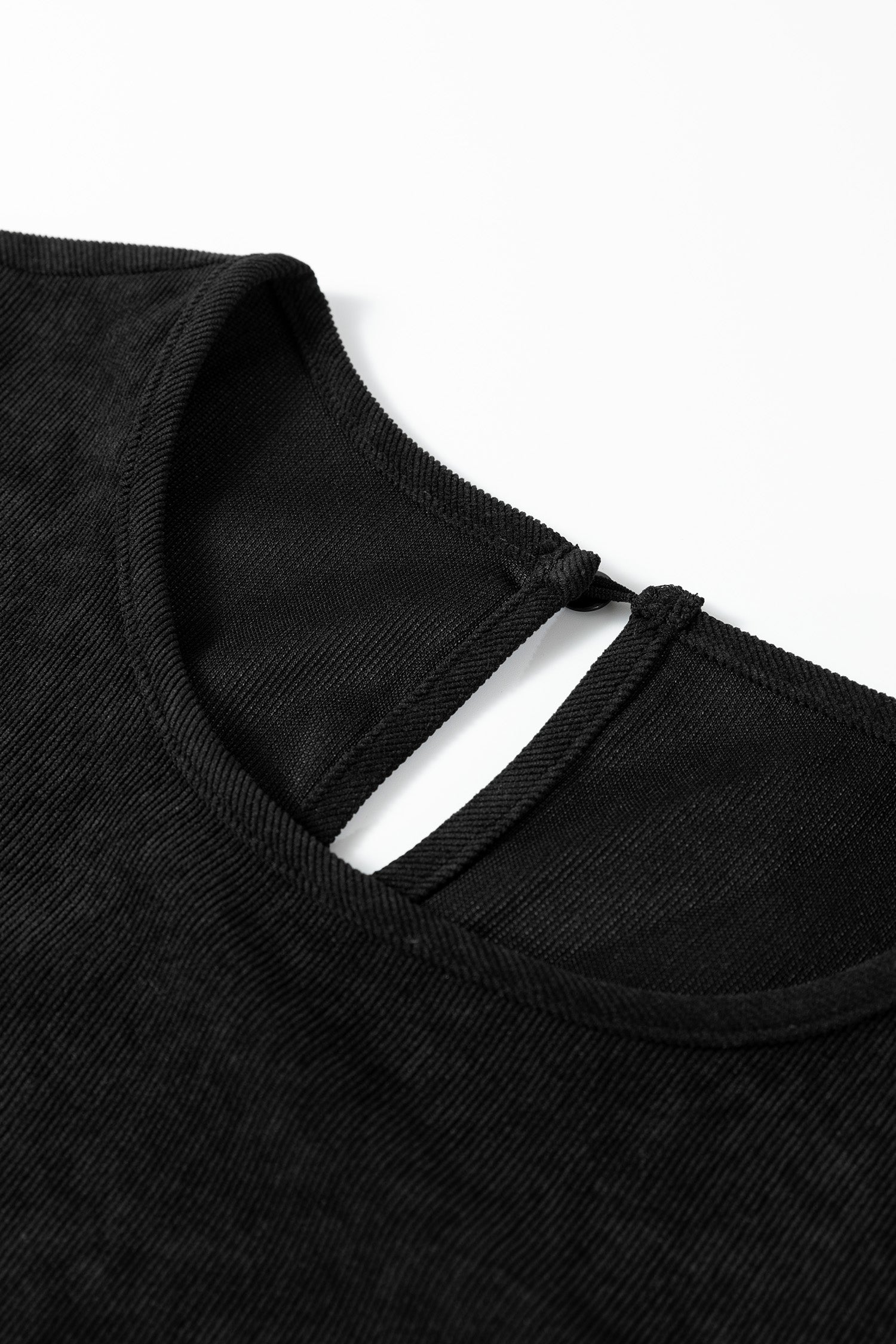 Sale Black Solid Color Seam Detail Raglan Long Sleeve Top