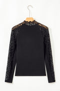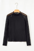 Black Leopard Mesh Patchwork Knit Long Sleeve Top