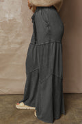 Black Mineral Wash Tiered Wide Leg Patchwork Drawstring Pants