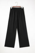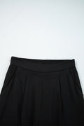 Black Pleated Detail Pull On High Elastic Waist Loose Straight Pants