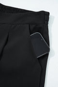 Black Stripe Elastic High Waist Pocketed Loose Pants