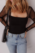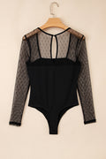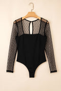 Sale Black Polka Dot Mesh Long Sleeve Square Neck Bodysuit