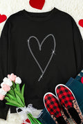 Black Rhinestone Heart Pattern Valentines Fashion Sweatshirt