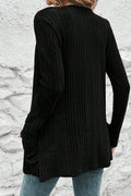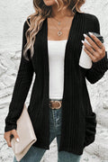 Black Ribbed Open Front Knitted Top with Pockets