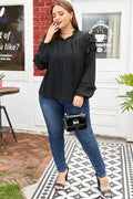 Black Ruffle Balloon Sleeve Chiffon Elegant Plus Size Shirt