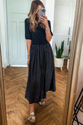 Black Short Sleeve Knit Top Patchwork Pleated Long Dress