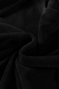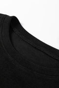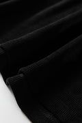 Black Solid Color Textured Knit Drop Shoulder Pullover Drawstring Shorts Set
