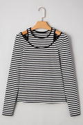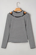 Sale Black Stripe Double-layer Cold Shoulder Long Sleeve Top