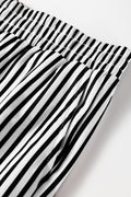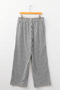 Black Stripe Elastic High Waist Pocketed Loose Pants