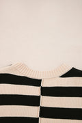 Black Stripe Two in One Knitted Top High Waist Splicing Hem Sweater Dress