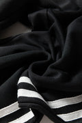 Black Varsity Striped Detail Crewneck Pullover Elastic Sweatpants 2pcs Outfit