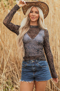 Sale Black Floral Mesh Sheer Long Sleeve Top