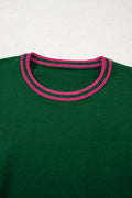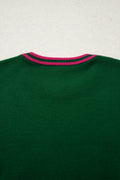 Blackish Green Floral Patchwork Shirred Cuff Puff Sleeve Sweater
