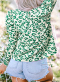 Sale Blackish Green Leopard Print Mock Neck Puff Sleeve Top