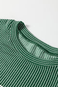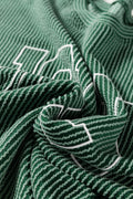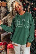 Blackish Green Twisted Rib Outlined Merry Letter Graphic Loose Long Sleeve Top