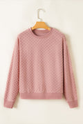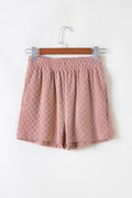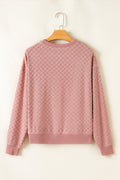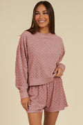 Sale Blossom Checkered Textured Long Sleeve Top and Shorts Set