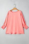 - This coral blouse is feminine and flattering.Shirred cuffs add a touch of elegance.Half sleeves for a versatile look.Textured fabric gives an unique hand touch.