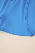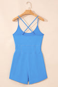 Sale Blue Crossed Spaghetti Straps Drawstring Waist Sporty Romper