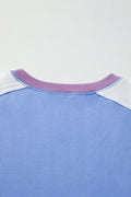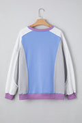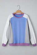 Blue Exposed Seam Colorblock Patchwork Ribbed Trim Pullover Sweatshirt
