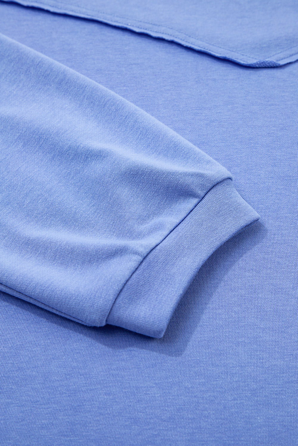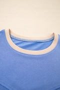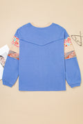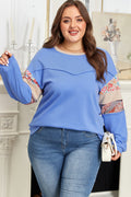 Blue Exposed Seam Floral Mixed Patchwork Relaxed Plus Size Top