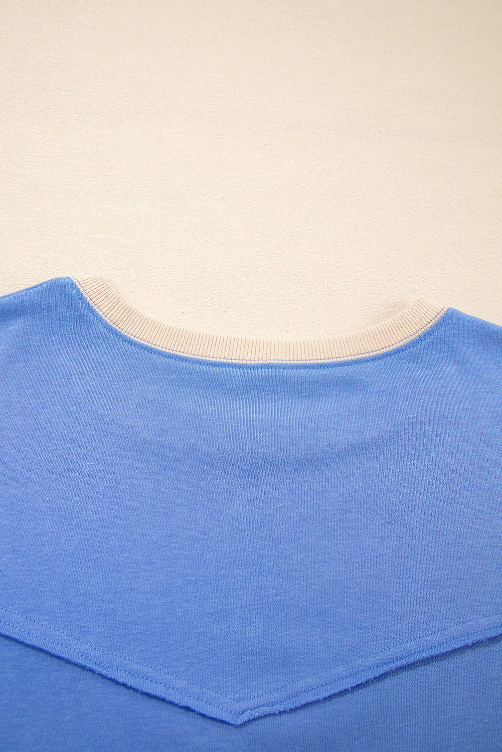 Sale Rose Red Plus Size Colorblock Patchwork Exposed Seam Sweatshirt