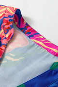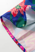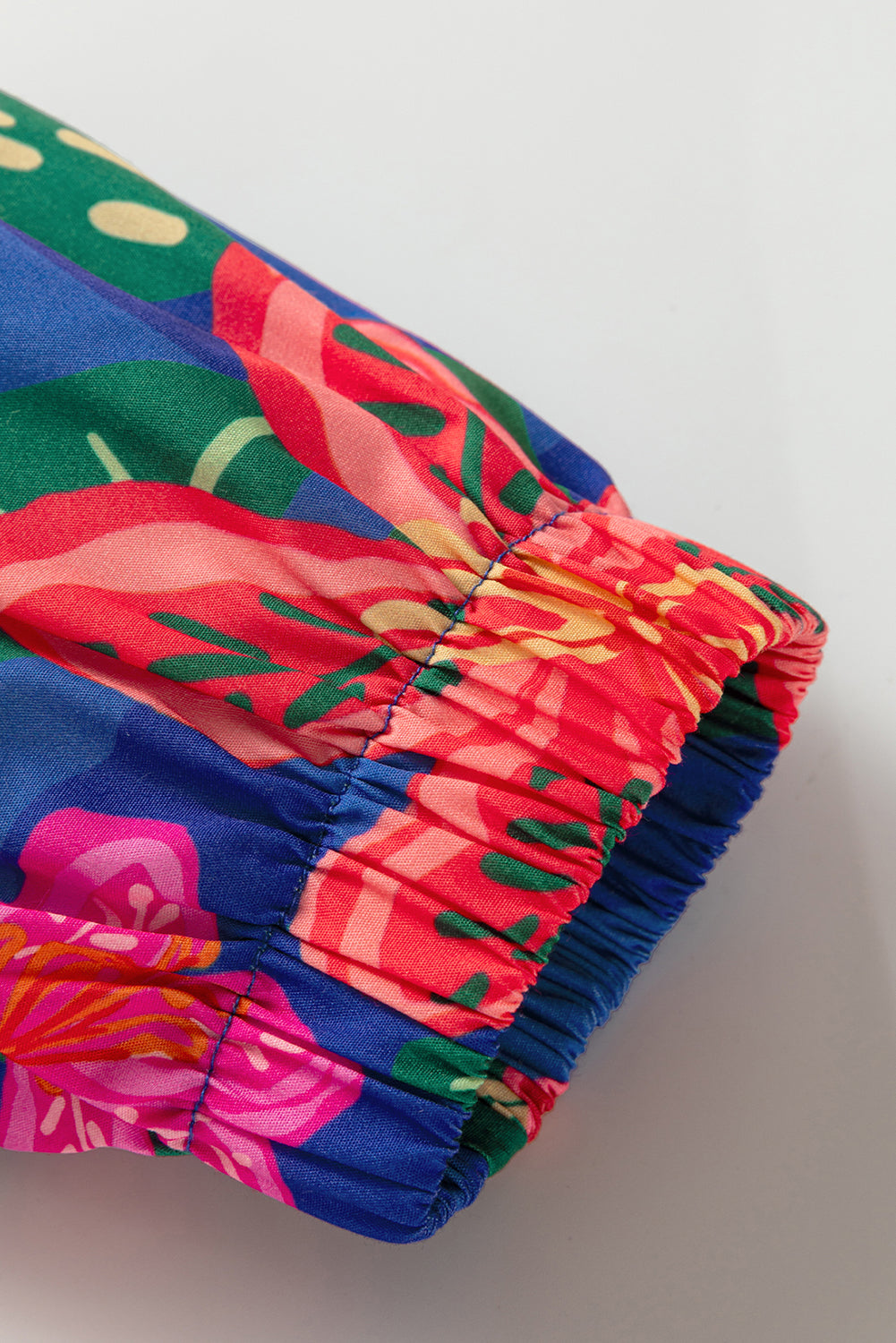 Green Floral Print Tiered Frilled Shirred Mock Neck Mini Dress