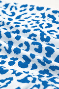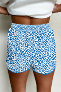 Blue Leopard Elastic Waist Lace up Contrast Trim Casual Shorts