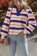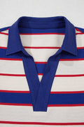 Sale Blue Stripe Color Block Polo Pullover Sweatshirt
