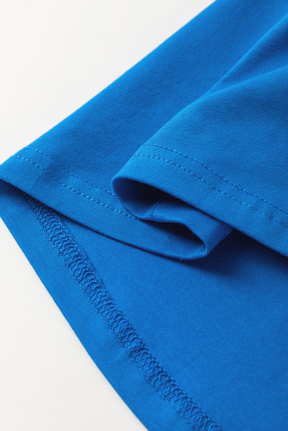 Sale Blue Sapphire Solid Color Stitching Detail Round Neck Tank Top