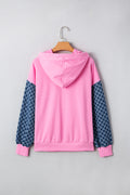 Bonbon Checkered Patchwork Kangaroo Pocket Half Zipper Hoodie