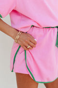 Bonbon Colorblock Edge Drop Shoulder T Shirt and Skort 2Pcs Set