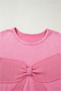 Bonbon Waffle Bowknot Patchwork Graphic Mineral Wash Plus Size Sweatshirt