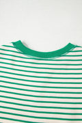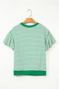 Bright Green Contrast Detail Striped Ruffle Short Sleeve Top