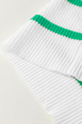 Bright Green Scalloped Trim U Neck Striped Ribbed Slim Sweater