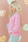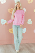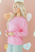 Bright Pink Mineral Wash Crossed Crew Neck Drop Shoulder Loose Sweatshirt