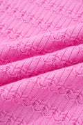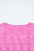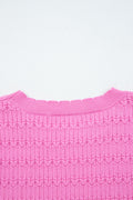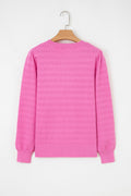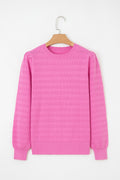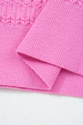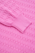 Bright Pink Trendy Pattern Knit Ribbed Cuffs Crew Neck Sweater