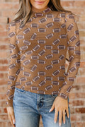 Brown Game Day Rugby Mesh Sheer Long Sleeve Top