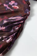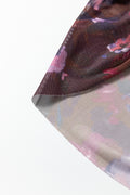 Brown High Neck Ruched Floral Mesh Top