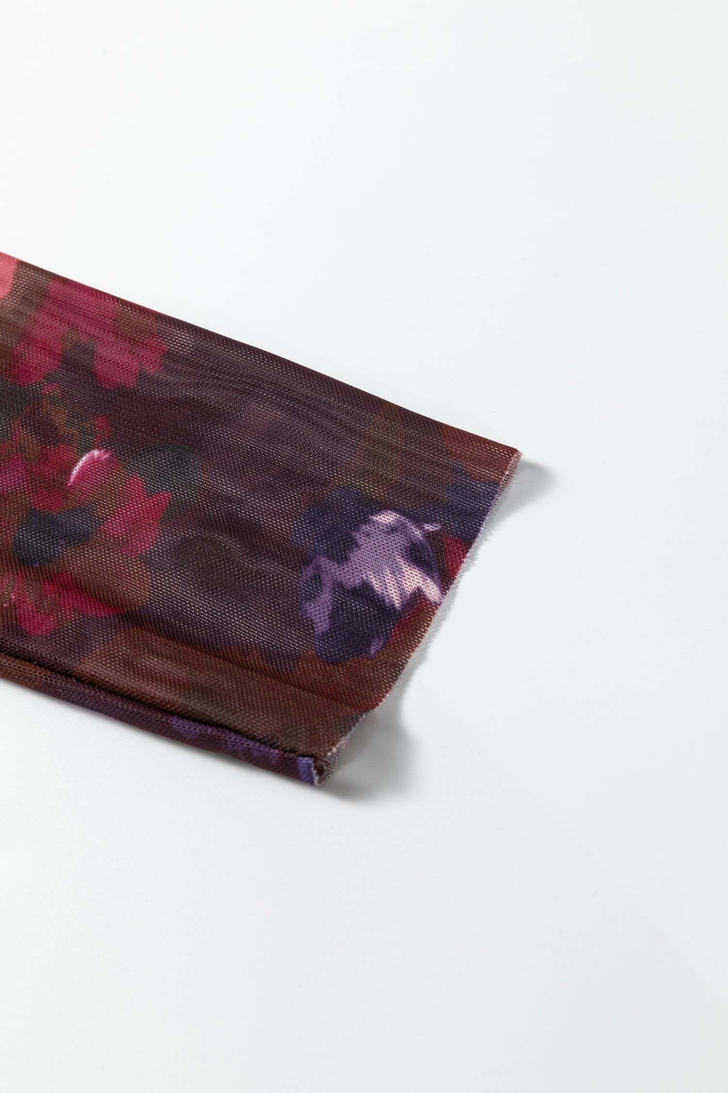 Sale Orchid Petal Floral Print Mesh Fitted Long Sleeve Top