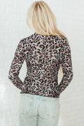 Brown Leopard Mock Neck Mesh Long Sleeve Top