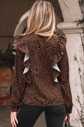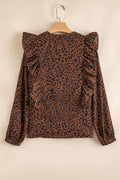 Brown Leopard Print Ruffled Puff Sleeve Blouse