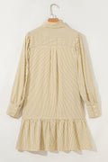 Brown Stripe Collared Neck Cuffed Long Sleeve Drop Waist Mini Dress