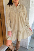 Dear Lovers Oatmeal Corduroy Half Button Collared Long Sleeve Mini Dress