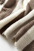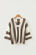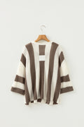Brown Stripe Colorblock V Neck Bracelet Sleeve Sweater