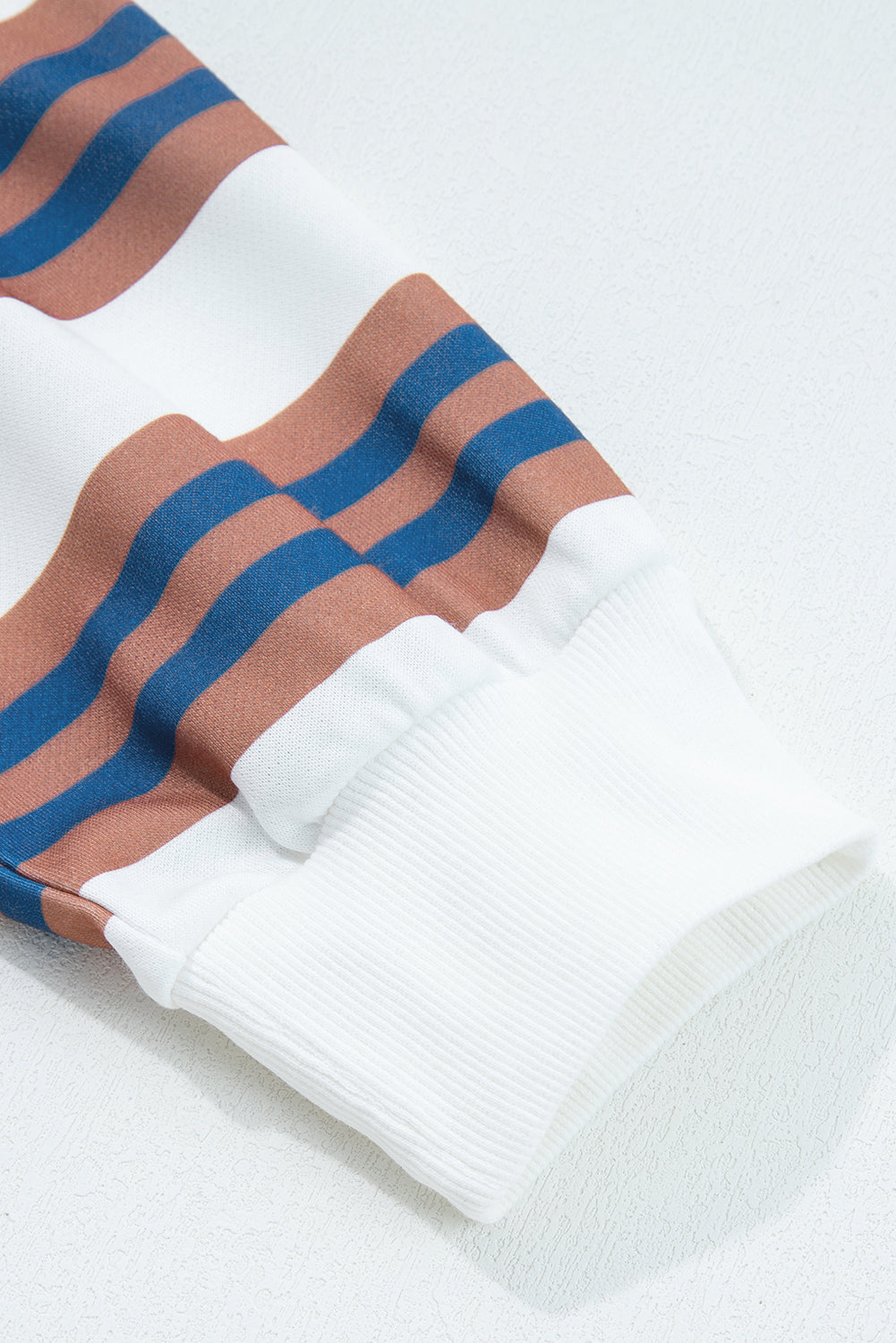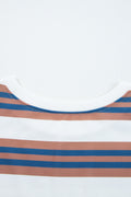 Sale Brown Stripe Crew Neck Drop Shoulder Pullover Sweatshirt