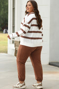 Brown Stripe Striped Drop Shoulder Pullover and Jogger Pants Set