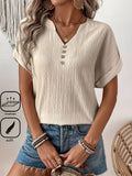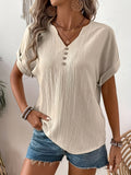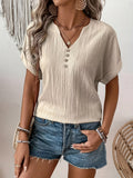 Sale Button Front Notched Neck Blouse, Casual Solid Short Sleeve Blouse