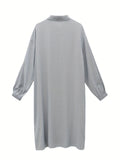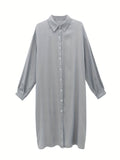 Button Front Solid Shirt Dress, Casual Long Sleeve Long Length Dress