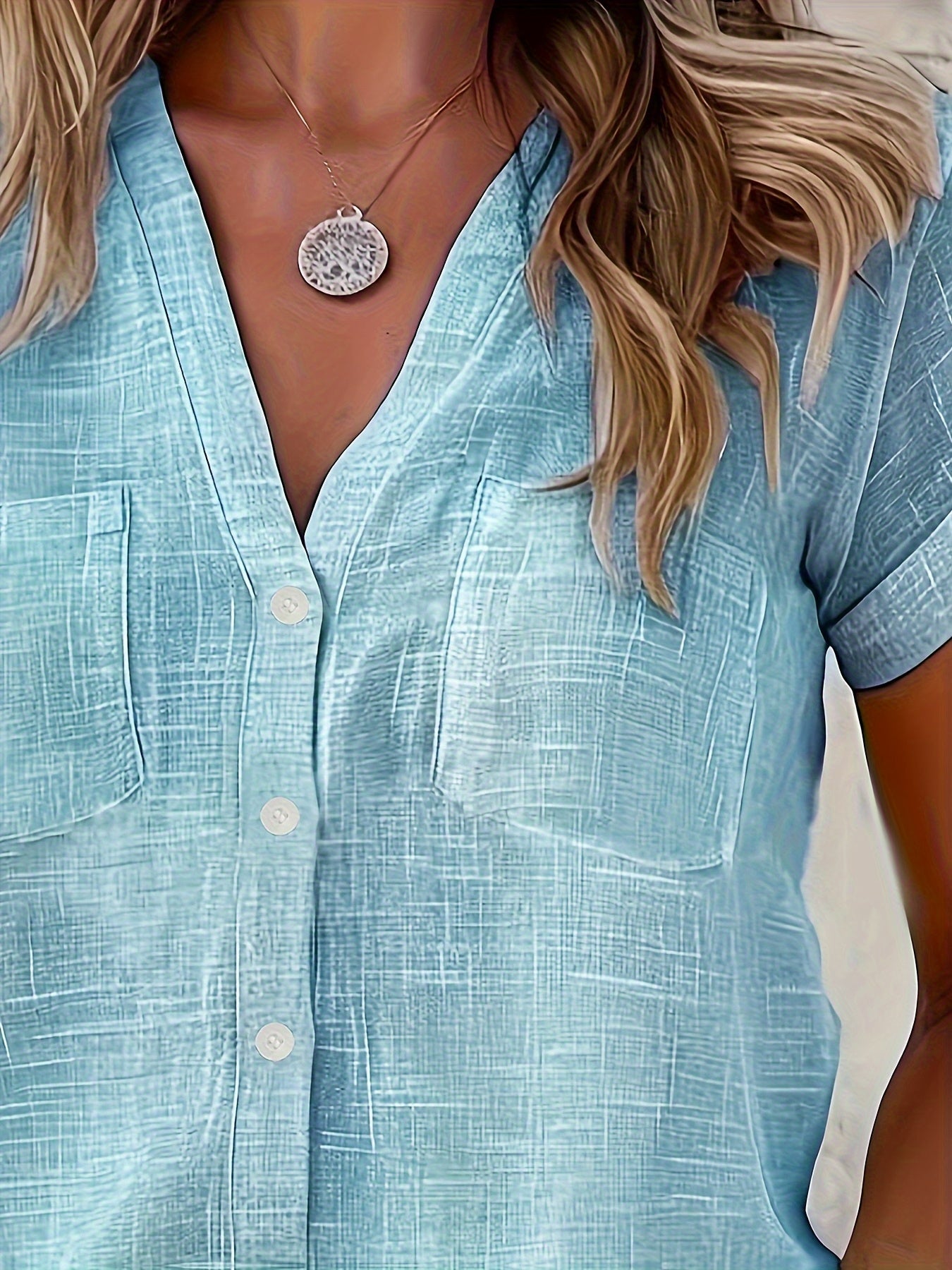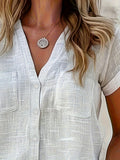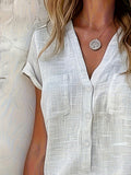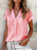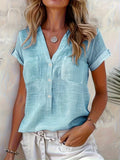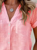 Button Pocket Solid Color Fashion Short Sleeve Shirt Top